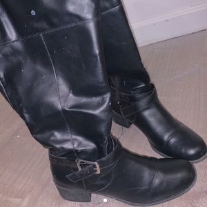 These cute boots feel nice and snug on your feet. They’re also in great condition given that I’ve only wore them like four times. They have a little bit on crease near the toes but still look really good. There is also a silver buckle in the sides. The heel is only an inch tall. Size 8.5.
