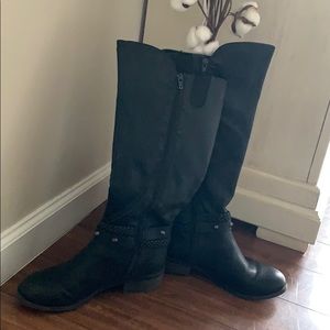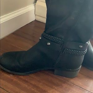 Black Riding Boots in a Size 7.5. Worn only a few times and in great condition! Accent straps around the ankle with braids and studs make them different then the rest ❤️