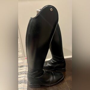 Lightly used Deniro Bellini dressage boots. Size 40/MC/M. WRAT black leather. Stored in Deniro boot bag with cedar foot and boot trees. Listing is for boots only.