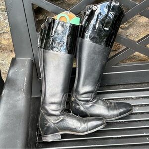 Ladies Tall Dress Boots, Raphael, by Tredstep Patent Tops, and zippers. Size 9, 14” calf, 20” height