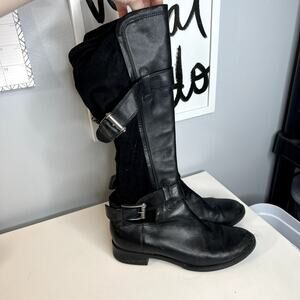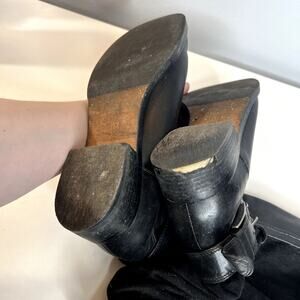Heel height: 1.25" total height: 15.5", good pre-owned condition.