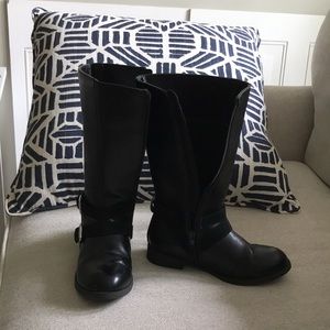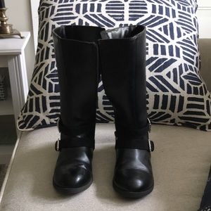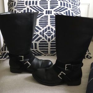 Black riding style boots with double side buckles, inside zipper, worn twice very good condition.