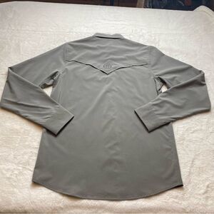 Black Rifle Coffee Company Gray Snap Front Western Style Shirt Size Small. Excellent used condition. Pearlized snap closure. Adjustable tab sleeves. Front snap pockets. Measures chest 40", length 29", sleeve 26.5".