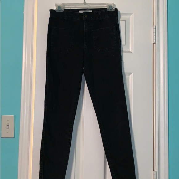 Black jeans with back pockets in the front. Very unique. Worn a couple times. Not damaged. Fits big on me. High waisted. Tagged PacSun for people to see. Actually by the brand “ life in progress “