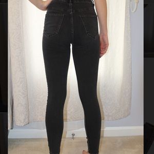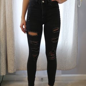 H&M high-rise ripped black jeans, barely worn. They are extremely comfortable and fitting.