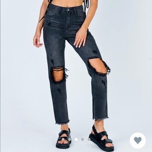 Black high waisted Princess Polly jeans with rips in the knees. These jeans look more acid washed but aren’t completely washed out. Super cute in the summer! Only worn a couple times.