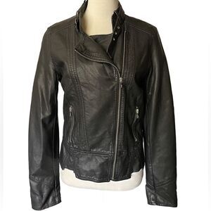 Black River Faux Leather Form Fitting Moto Jacket w/Asymmetrical Zipper(M)