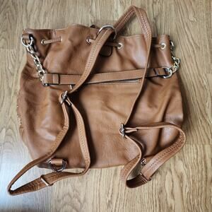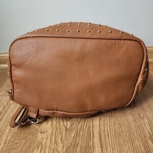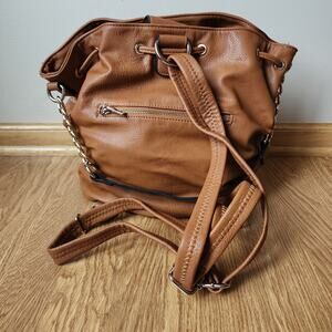 Black Rivet Brown Shoulder Purse Bucket Bag Back Pack Inner Outer Pockets. Pre-owned, good condition. Includes a shoulder strap and detachable back pack strap. Measures approximately 16" wide by 7" deep by 13" tall. Smoke free, pet friendly home. Please see pictures and contact me with questions.