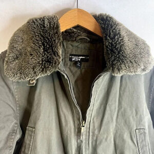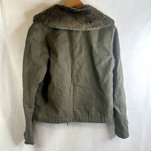 Black Rivet Faux Fur Collar Aviator Utility Jacket Size Large