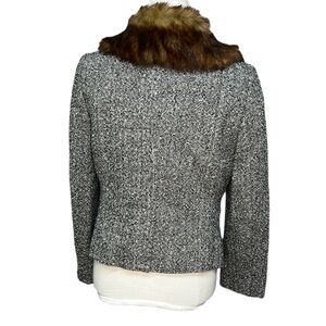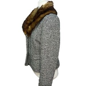 Black & white tweed with a beautiful faux fur brown colllar