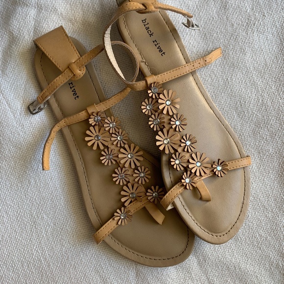 Black Rivet Flower T Sandal