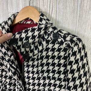 Black Rivet Houndstooth Wool Blend Coat Zip Front Black White Womens Medium