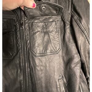 Black Rivet Leather Jacket GIII Mens SMALL Bomber Removable Hood MSRP $600