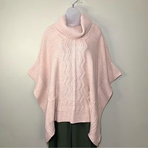 Black Rivet Pink Poncho Sweater Turtle Neck Pullover Shimmer Pockets Oversized