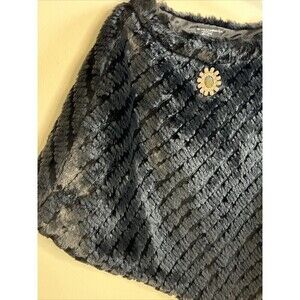 Black Rivet Poncho Women's One Size Black Faux Rabbit Fur Boat Neck Shawl Poncho