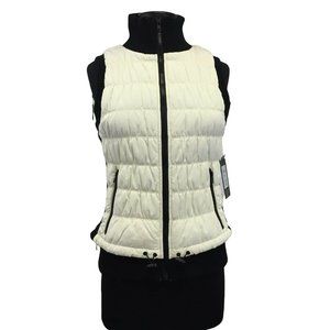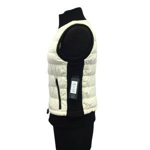 Black Rivet Puffer Vest Womens M Ivory Black Zipper Pockets Wilsons Leather
