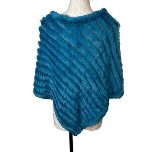 Black Rivet Womens Poncho One Size Blue Wool Rabbit Fur Knit Pullover
