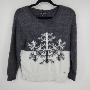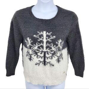 Black Rivet Womens Snow Flake Winter Sweater Metallic Thread Faux Fur Size M
