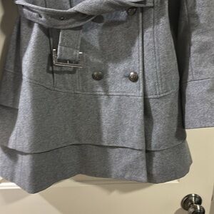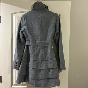 Cute long coat by Black Rivet. Ruffle layer at bottom(see pic) with high collar neckline