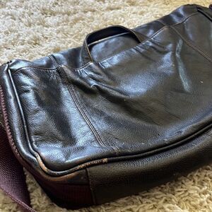 Black Rivet Leather Cross Body Messenger Laptop Bag Distressed Adjustable Strap Beautiful
