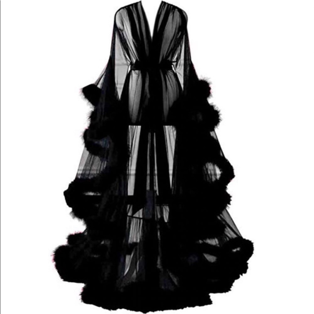 SOLD. Beautiful black robe worn once for my maternity shoot! Fits all sizes. It’s so pretty but I have no use for it! Accepting offers!!