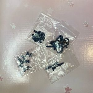 4 assorted pairs of black “Rocker” earrings. Never worn. Brand new come individually packaged.