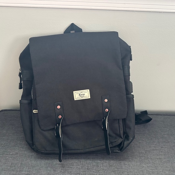 Medium-sized black Ronyes backpack. Great for work travel - can fit normal sized laptop. Lightly used.