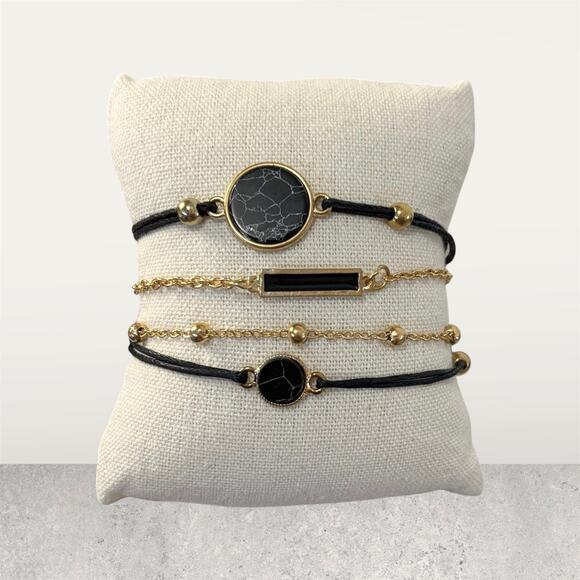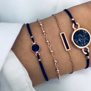 Spark up your style with our Black Rope Chain Bracelet Set! This 4 piece set includes a charming black and gold bracelet that are made of high-quality copper and tin alloy. Complete your look effortlessly with this versatile and stylish accessory.