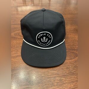 black cap with white rope accent. Embroidered logo for a clean branded look. Lightweight and structured for everyday wear. Classic black with contrasting white detail for versatile styling.