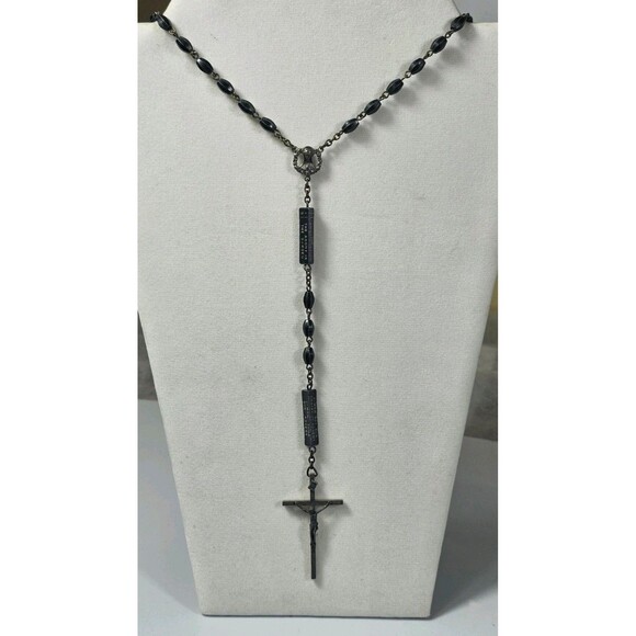 Black Rosary with Mystery and Sorrowful Mysteries Markers +Crucifix & Bead Chain