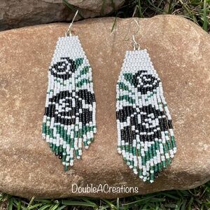 Here’s a pair of Black Rose Beaded Earrings that are lightweight and comfortable to wear all day long. Made with high quality glass Delica Beads, beaded one bead at a time. Love and passion goes into making my jewelry. This process requires focus, patience, and dedication. Each bead is 16th of an inch and can take hours to complete.