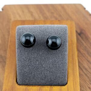 Black Round Bead Stud Earrings Silver Tone Post Back Everyday Simple Classic