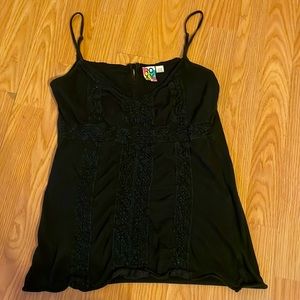 Black Roxy top with adjustable straps, it has lace designs on the front throughout, can be worn casual or dressy. Good condition