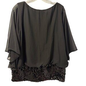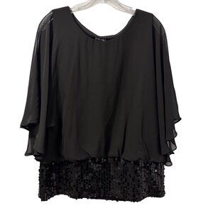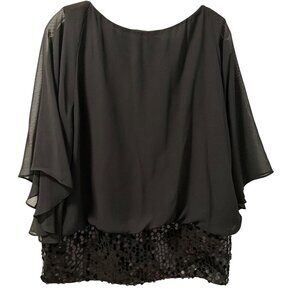 Black Roz & Ali Chiffon Blouse With Sequined Hem Womens Size L Blouse