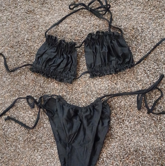 Ruched bikini, can be worn in different ways. Cheeky. Worn once.