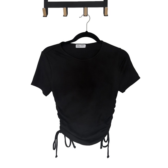 Black Ruched Drawstring Top