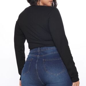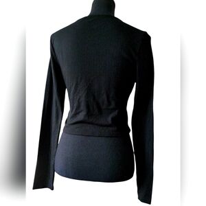 Elevate your style with this chic black ruched long sleeve top. Perfect for any occasion, this top offers a flattering fit and timeless elegance.