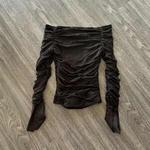 Black Ruched Off-Shoulder Top