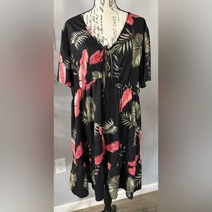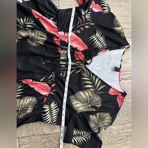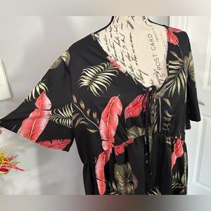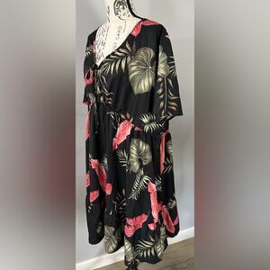 This elegant black midi sundress features a ruched bodice and ruffled details, perfect for a casual resort getaway. The scoop neckline and flutter short sleeves add a touch of charm to its breezy silhouette.