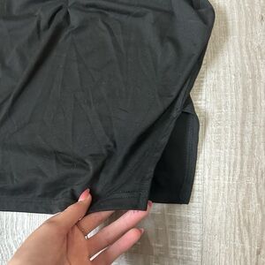 Stylish black tank top with ruched detailing. Perfect for casual wear. Slits on sides