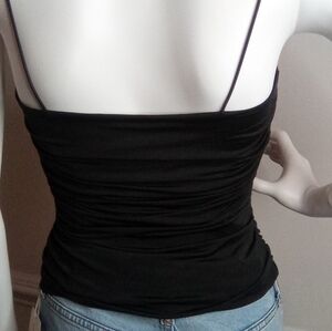 This women's black ruched top is perfect for any occasion. Its sleek design and comfortable fit make it a must-have in your wardrobe.