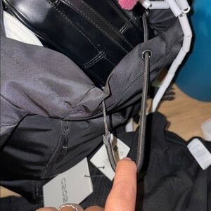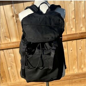 Stylish black backpack with adjustable straps. Perfect for daily use. One side of the spandex broke, but still works fine. But it is still attached.