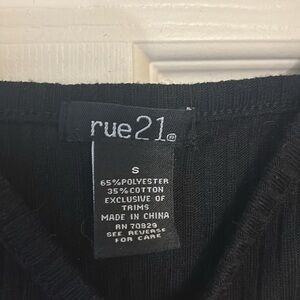 Black Rue21 tank with faux button details. The material is very soft and light with a rib detailing. Please look at all photos carefully before purchasing. In good condition!