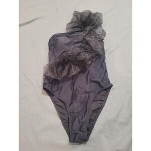 Black Ruffle 1 PC Tummy Control Swimsuit, Black, w/ Sheer Zebra Cover-Up, Small