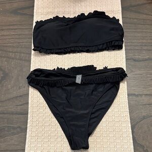 Stylish black bikini set with ruffle details. Perfect for the beach or pool.