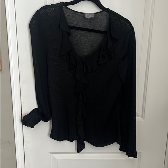 Elegant black ruffle blouse perfect for any occasion. Stylish and versatile.