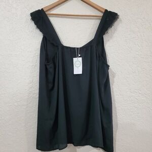 Black Ruffle Blouse Womens Size XXL Sleeveless V-Neck Lace Lightweight