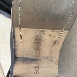 Super cute black suede booties with ruffle detail. Size 7 in good condition. Made by Sole Society