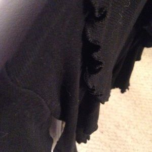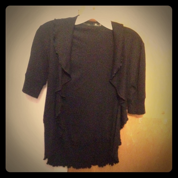 black cardigan with ruffles around edges, 3/4 sleeves, EXCELLENT CONDITION!!