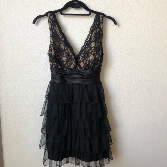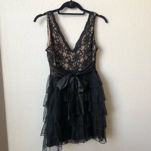 Black Lace/Ruffle Dress - Size 3 - Like New - V-neckline - Zipper closure